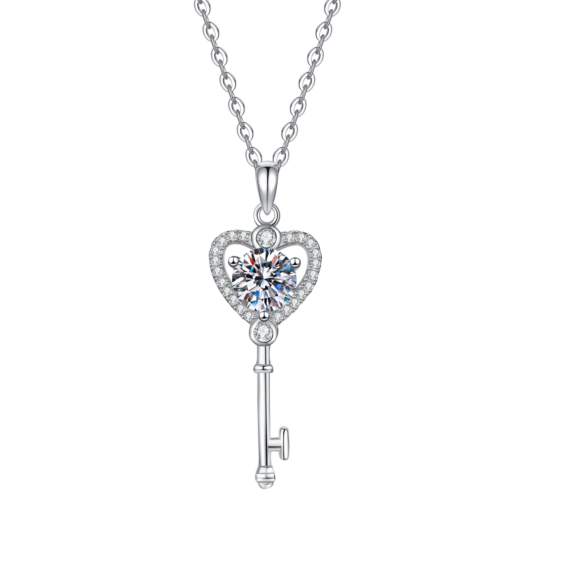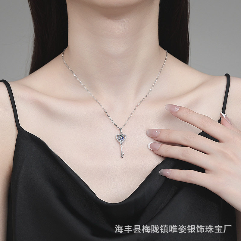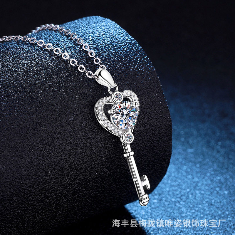 为您提供商品S925纯银项链莫桑石项链T家爱心钥匙吊坠1克拉莫桑钻石项链的详细介绍,