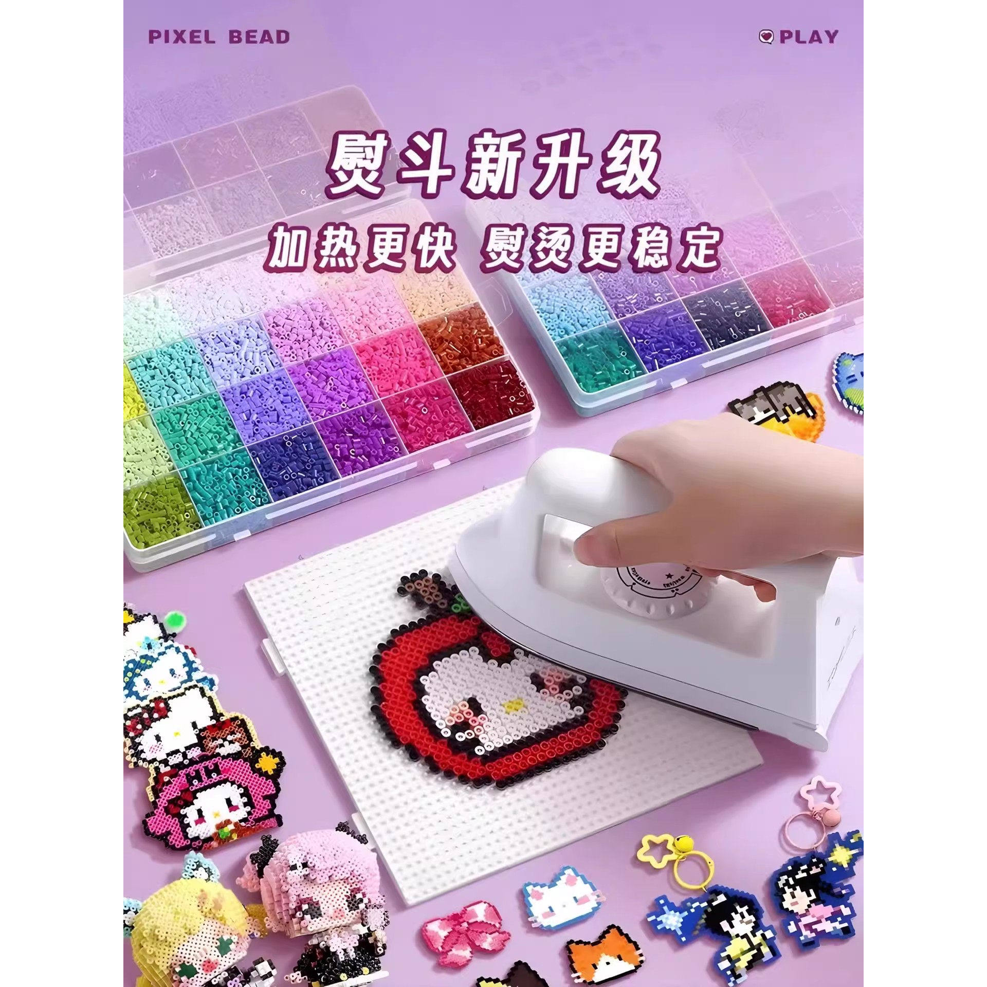 拼豆材料包全套工具豆笔颗粒拼豆豆手工diy女孩小玩具融合豆熨斗6