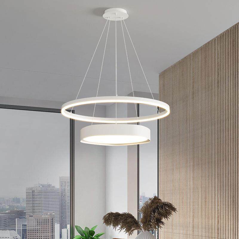 117客厅新卧室灯白色 餐厅吊灯现代简圆约形餐具桌饭厅灯2025年款