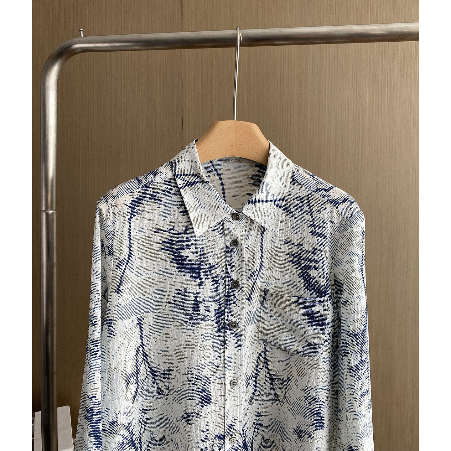 为您提供商品长袖 百搭气质桑蚕丝上衣 女2026新款 欧洲站质感水墨风印花真丝衬衫的详细介绍,