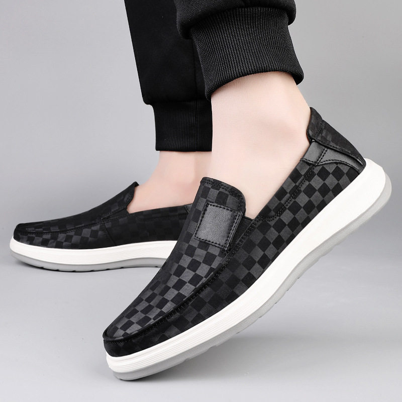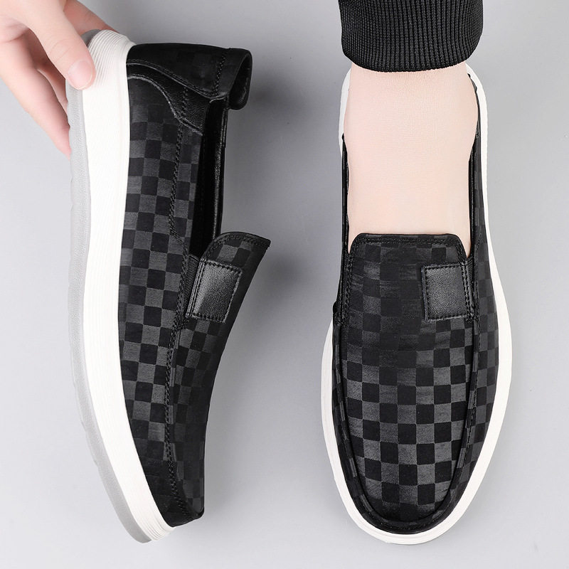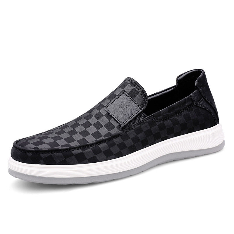 男外贸平底套脚休闲单鞋 跨境男鞋 男 压花格纹乐福鞋 春季 大码 豆豆鞋