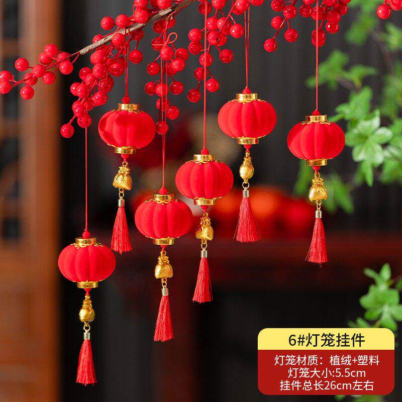 迷你植绒小红灯笼挂饰树上结婚院子乔迁新居2026新款 饰 新年挂件装
