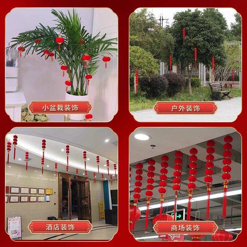 元 饰 旦新年春节植绒小灯笼挂饰树上小红灯笼盆景户外阳台结婚庆装