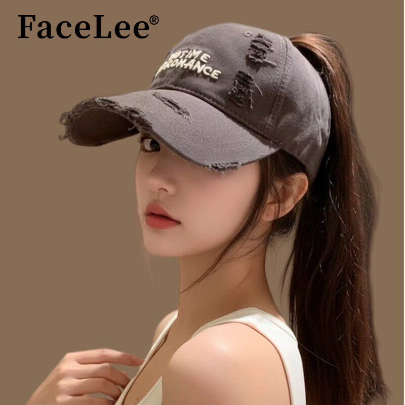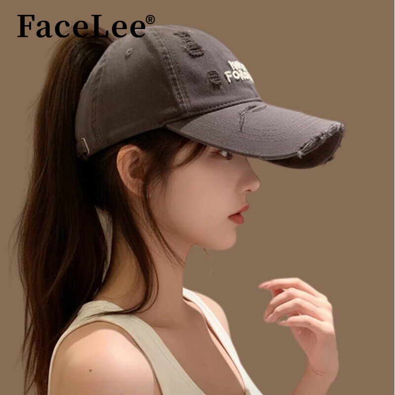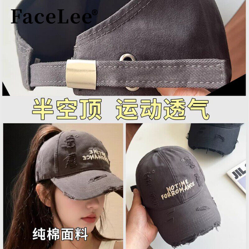 韩系破洞刺绣半空顶棒球帽宽帽檐大脸显 FaceLee日本设计师联名款