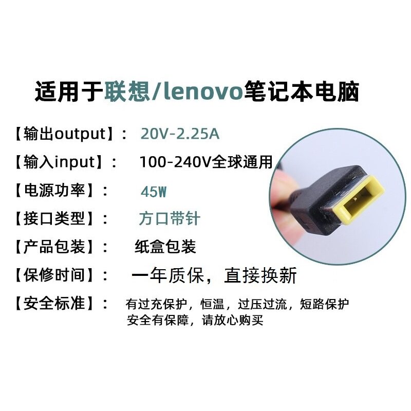 thinkpad 联想原装 笔记本电脑typec充电器小新air yoga 100W电源适配器圆口方口电源线通用 65W