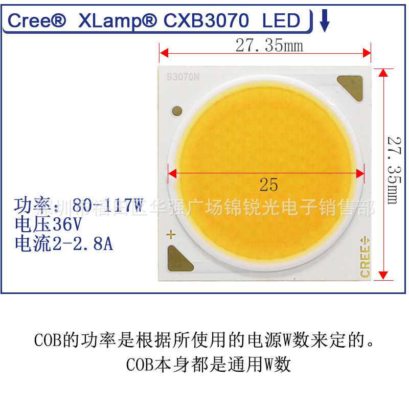 为您提供商品3590 科锐CREE CXA3050 CXB3070 高亮大功率LED灯珠 COB筒灯灯珠的详细介绍,