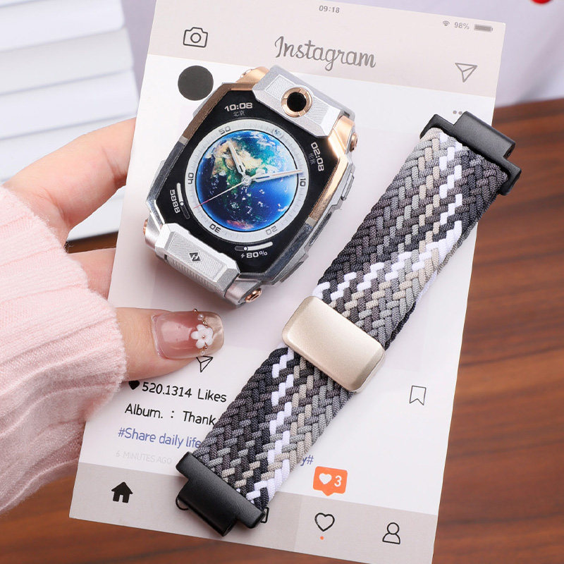 适用华为手环8 11表带磁吸编织智能手表尼龙弹力腕带7NFC版 运动手环透气磁扣表链男女生夏天配件