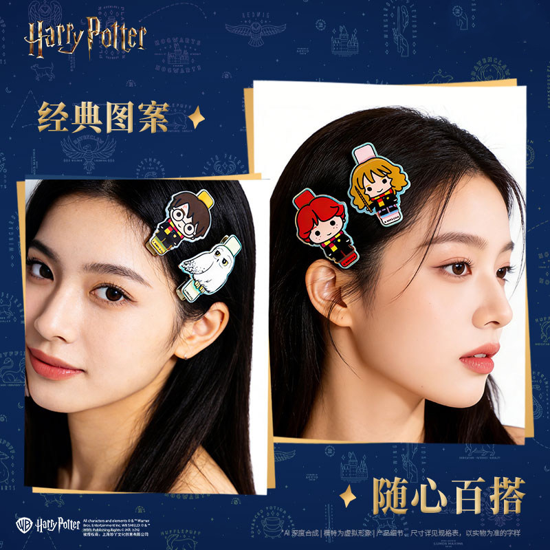 哈利波特正版 卡通发夹赫敏罗恩哈利发饰 周边侧边刘海镭射发夹Q版由