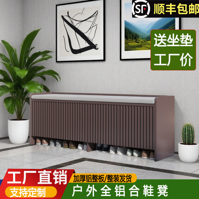 一体换鞋 凳 柜防水防晒别墅庭院露台家门口入户可坐式 铝合金户外鞋由