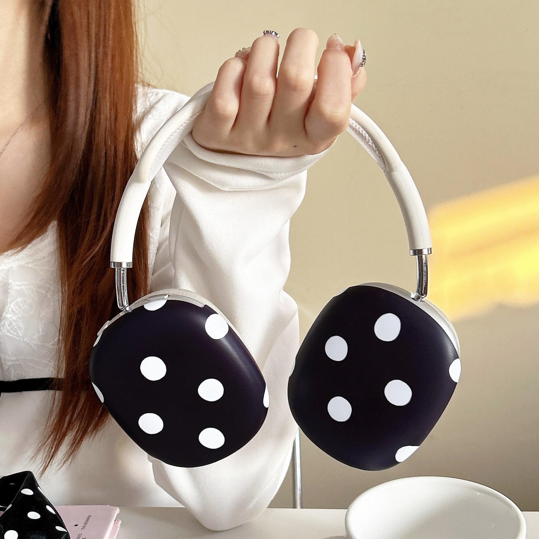 适用Airpods 头戴式 苹果airpodsmax2蓝牙耳机保护套创意菲林壳女款 max2硬壳ins风波点高级感套 Max2耳机壳新款