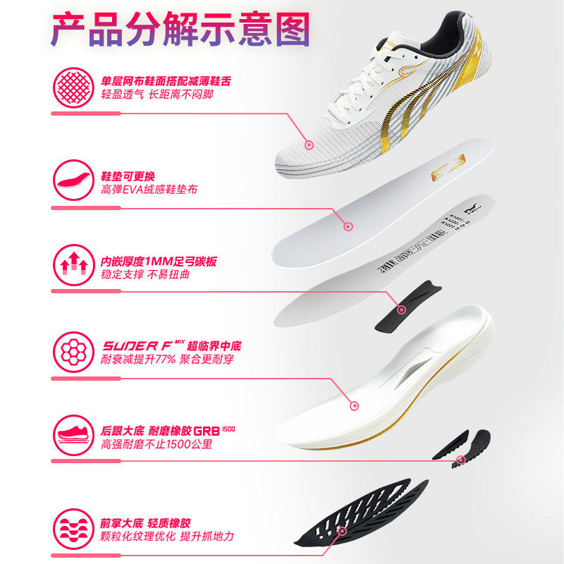 北体共研 官方跑步鞋 男女竞速运动鞋 音速猫逆天3.5碳板气垫跑鞋