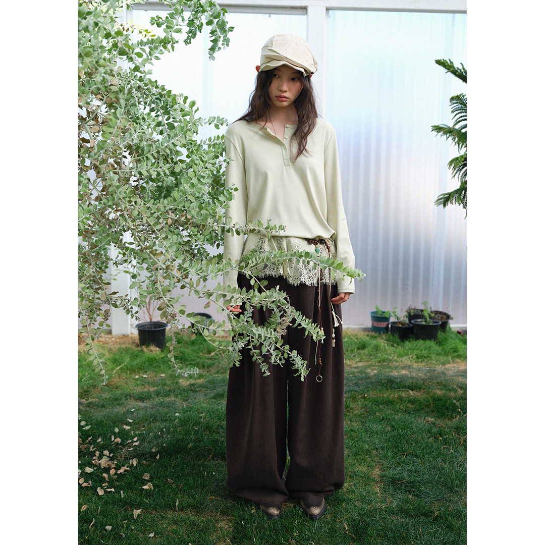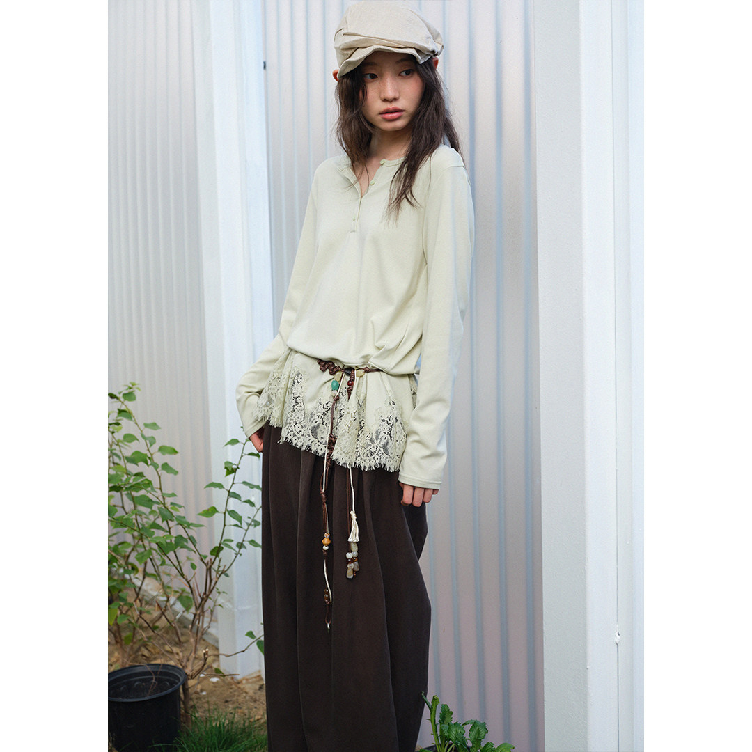 BLUEerror t恤女花边叠穿打底衫 春季 上衣 蕾丝拼接白色圆领长袖