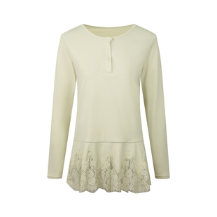 为您提供商品BLUEerror t恤女花边叠穿打底衫 春季 上衣 蕾丝拼接白色圆领长袖的详细介绍,