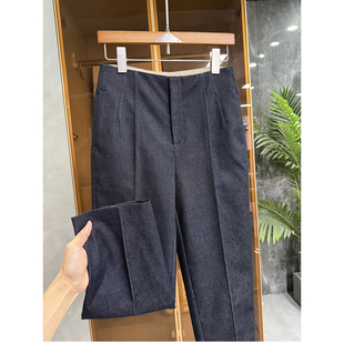 女 小个子收 jin口P牌料 中高腰休闲烟管九分西裤 11960由