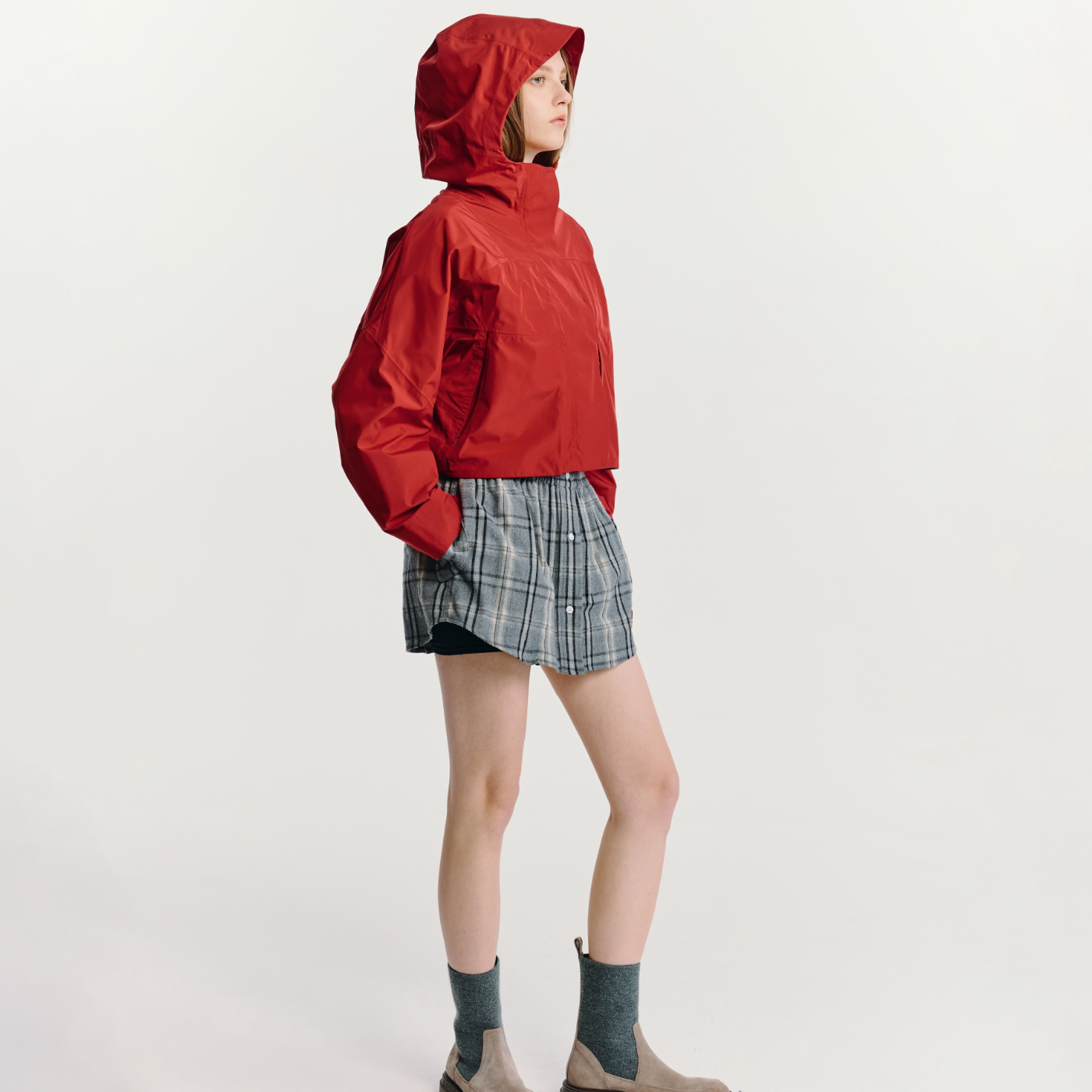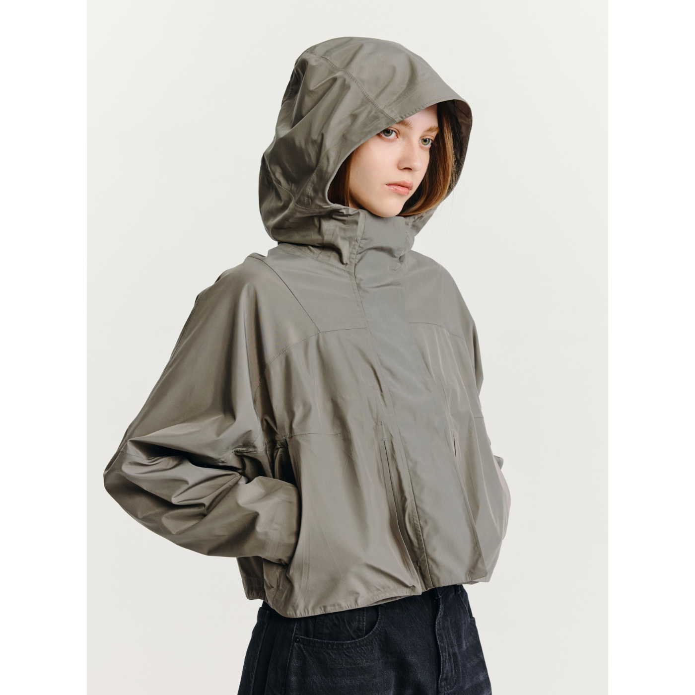 洋气连帽宽松休闲冲锋衣大码 两层防水防风夹克 外套女时尚 春秋短款