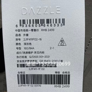 外套2J1F411 2499 专柜正品 47折D家2025春款由