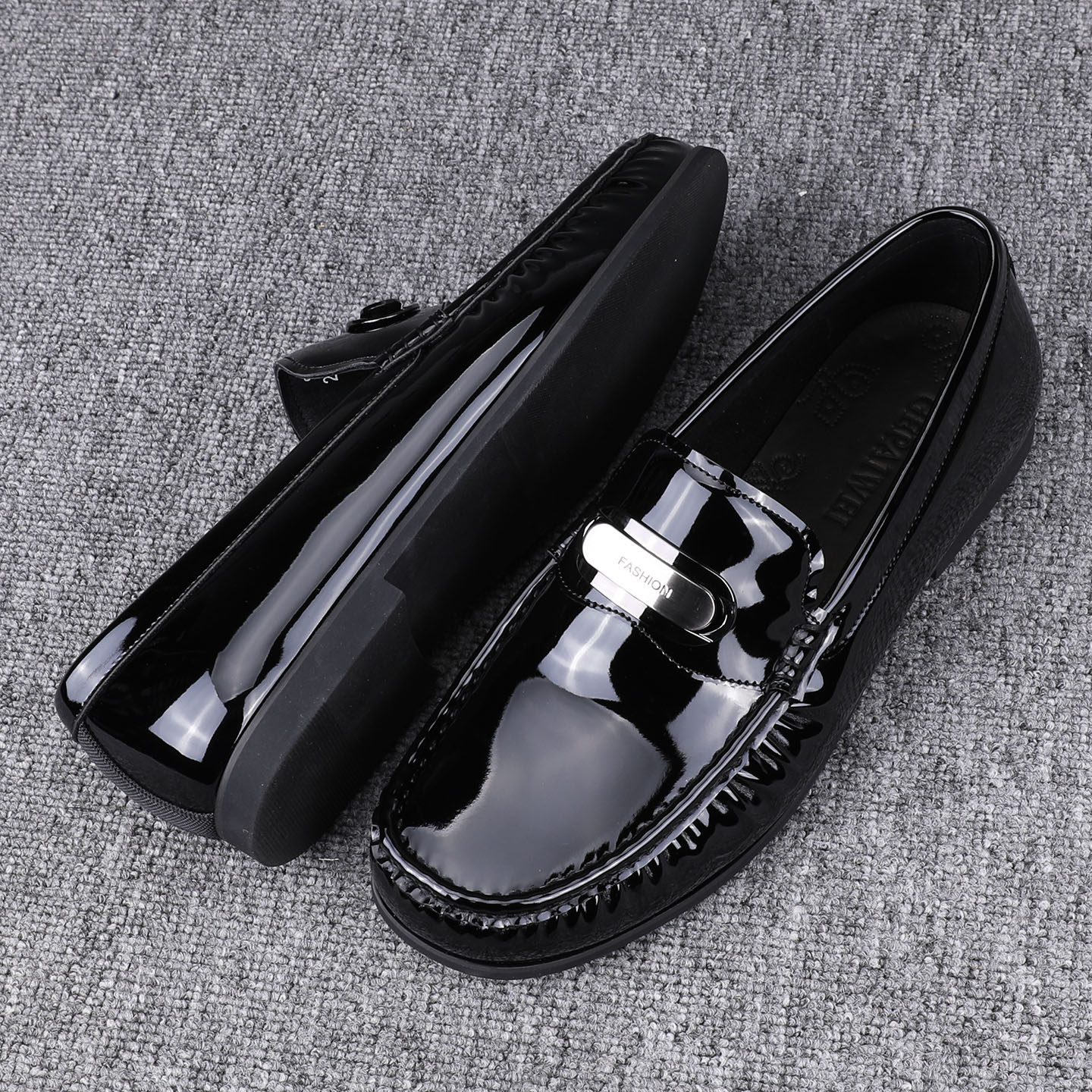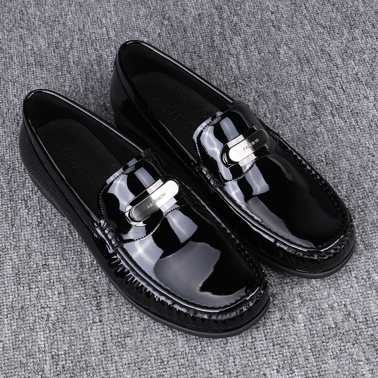 男士 2026新款 经典 潮流亮皮豆豆鞋 男 真皮透气一脚蹬懒人休闲驾车鞋