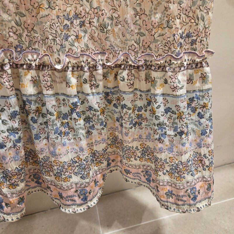 织物猪 甜美风花卉吊带连衣裙女初夏漂亮蓬蓬花苞短裙子 花漾甜茶