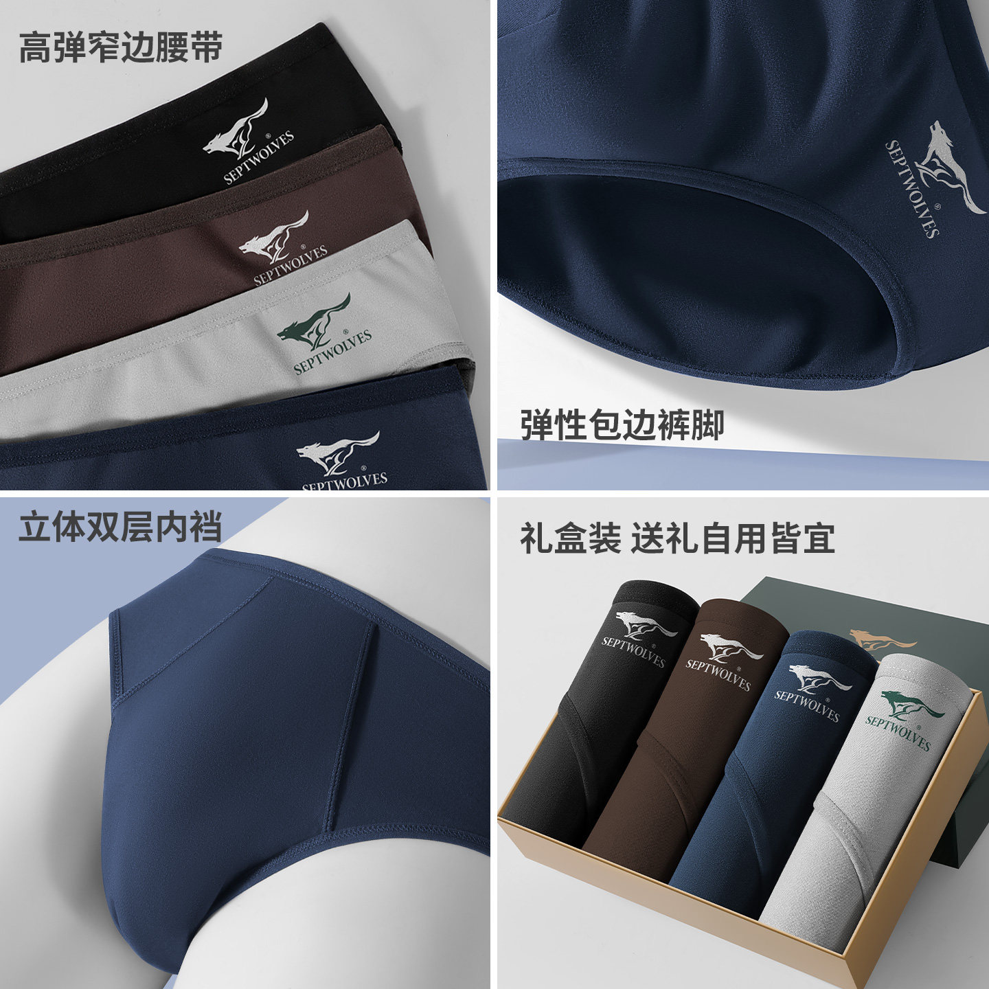 底裤 纯棉男生短裤 内裤 三角裤 头男式 衩高档透气全棉新款 七匹狼男士