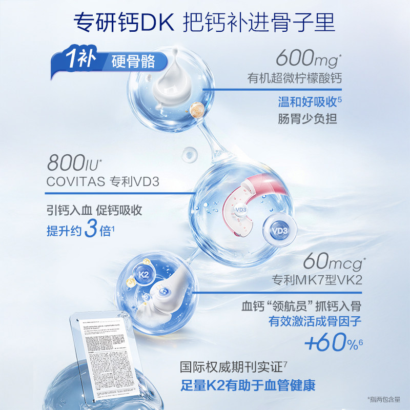 K2柠檬酸钙非钙片 拜耳OneADay液体钙成人中老年氨糖软骨素补钙D3由