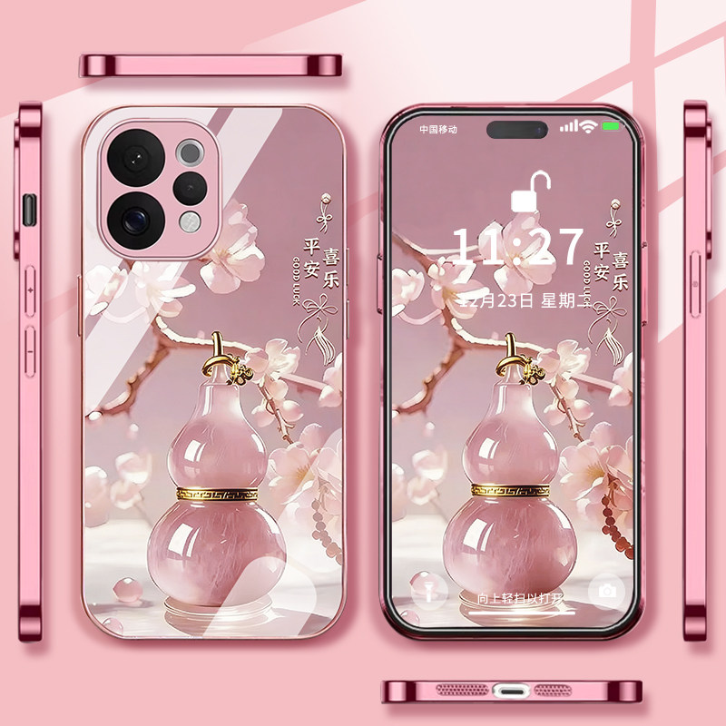 适用vivos50手机壳s50promini平安喜乐葫芦金属漆玻璃国潮新款 高级全包防摔女款