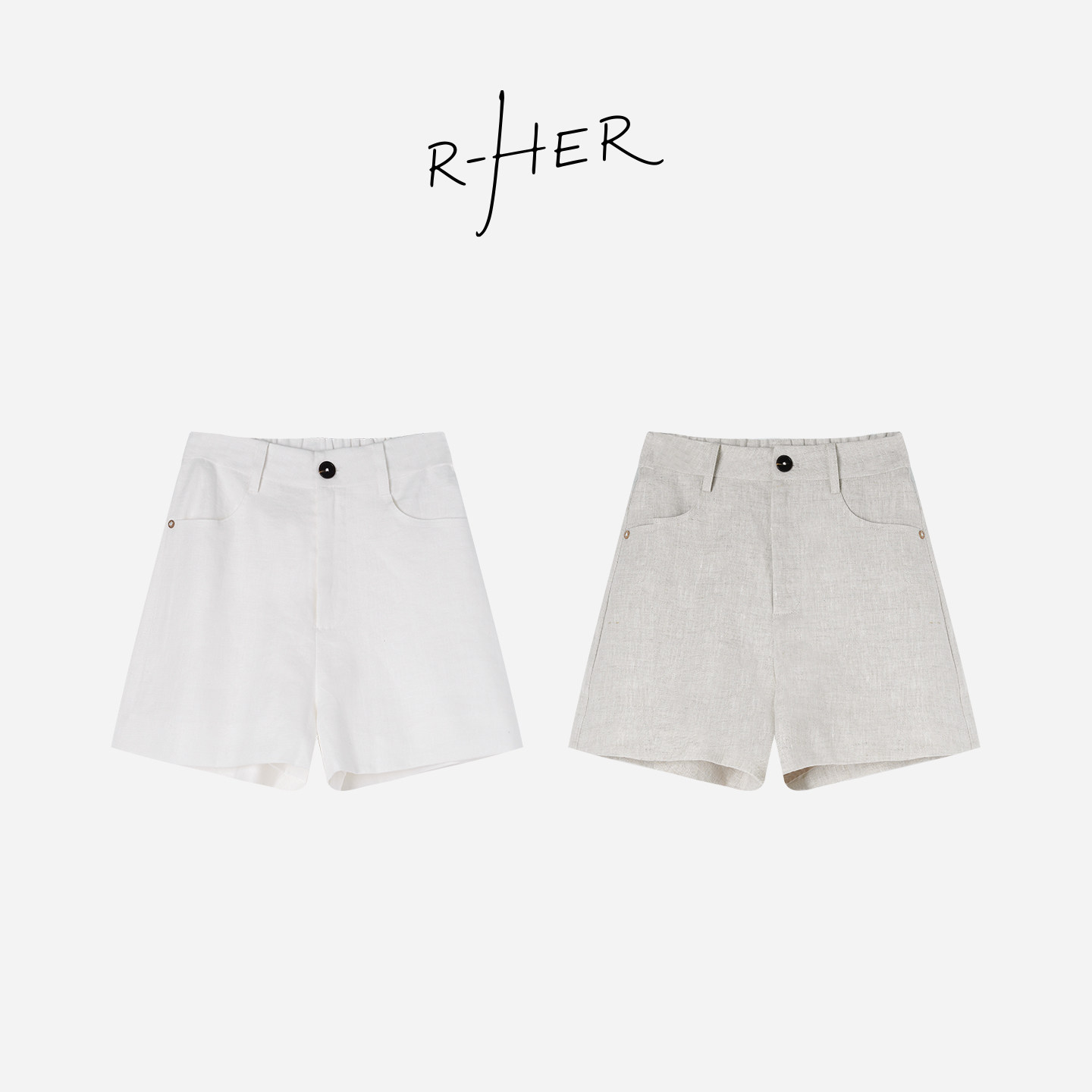 短裤 女夏简约百搭工装 亚麻高腰弹力直筒休闲裤 HER 辣妹短裤