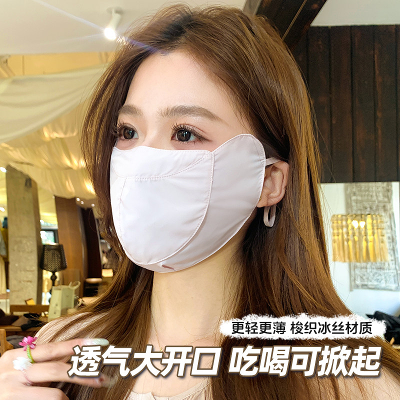 全脸防紫外线高颜值护眼角冰丝透气遮阳口罩 可喝水防晒面罩女夏季由