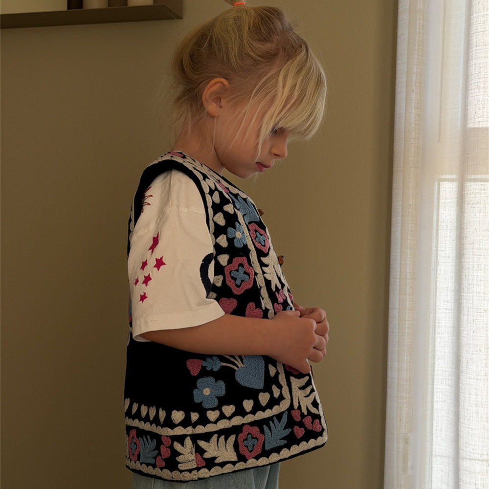 Shinyee ss26春夏新款 儿童复古马甲拼布外套半裙裤 子 sissel