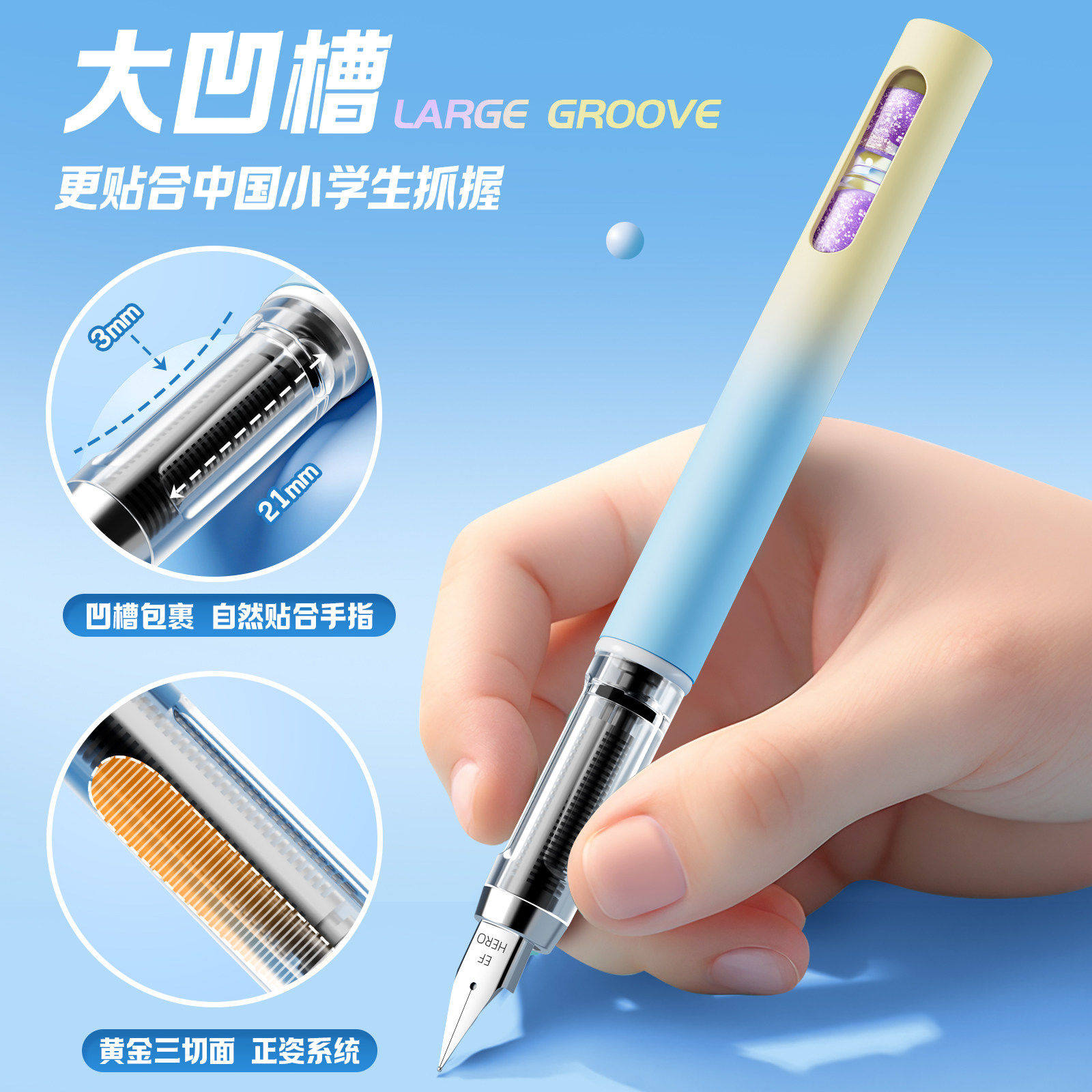 英雄牌359钢笔学生专用三年级儿童练字小学生钢笔可换墨囊高颜值四年级男女生初学者不可擦 官方 钢笔正品