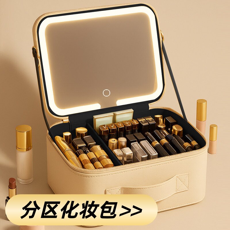 为您提供商品女大容量分区收纳包便携化妆箱手提多功能化妆包带镜子灯带化妆盒的详细介绍,