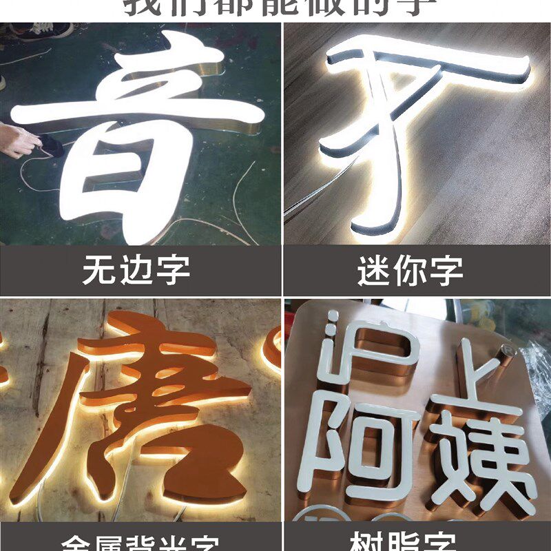 迷你发光字户外门头log广告牌制作压克力不锈钢LED背光字招牌定做由