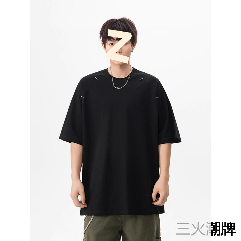 半袖 纯棉重磅潮牌印花短袖 上衣1 宽松美式 新款 T恤衫 男女夏季