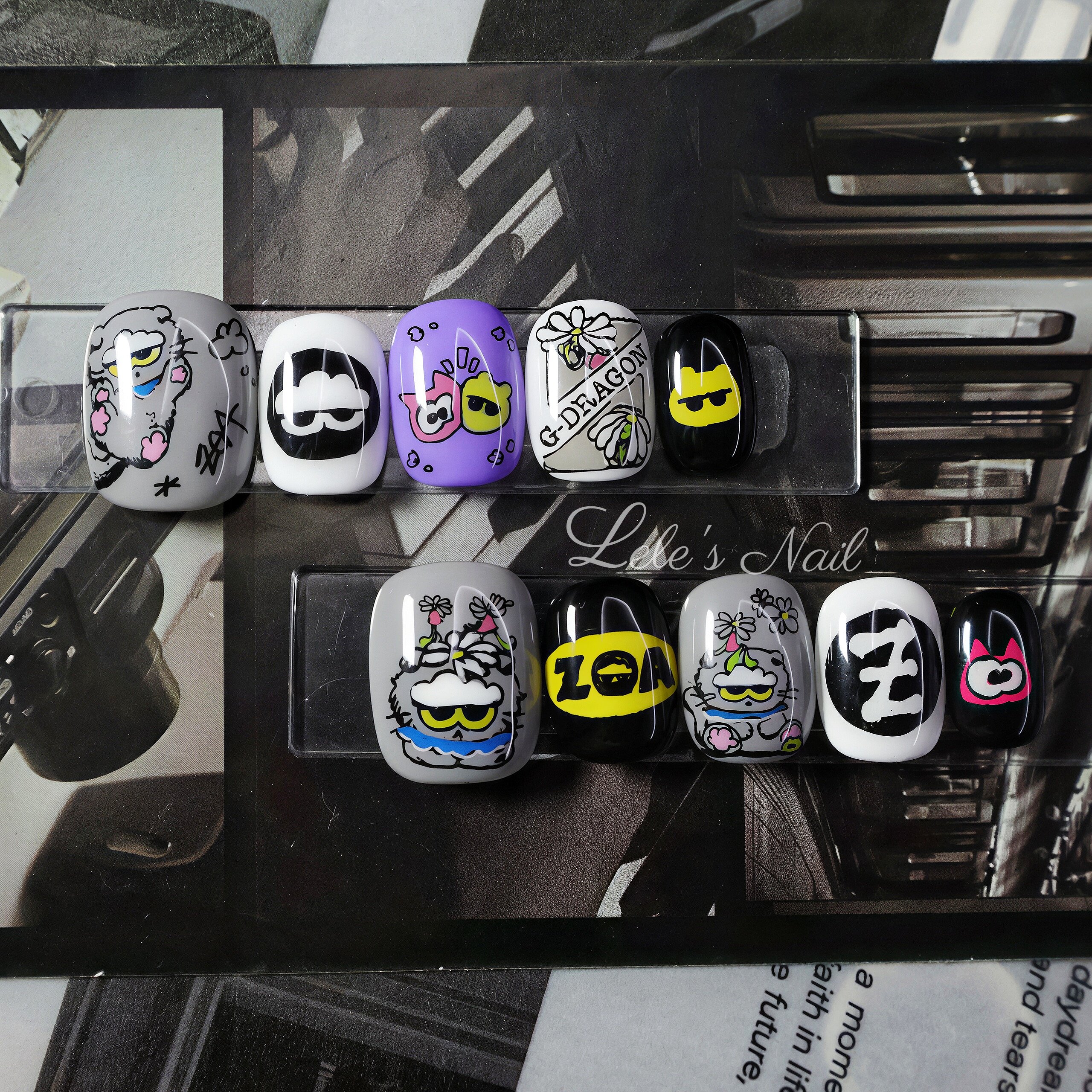 中性应援甲演唱会手绘穿戴甲短甲 权志龙ZOA雏菊猫2026新款