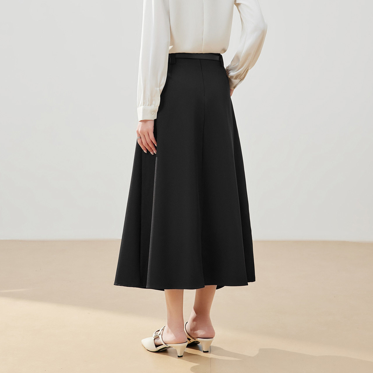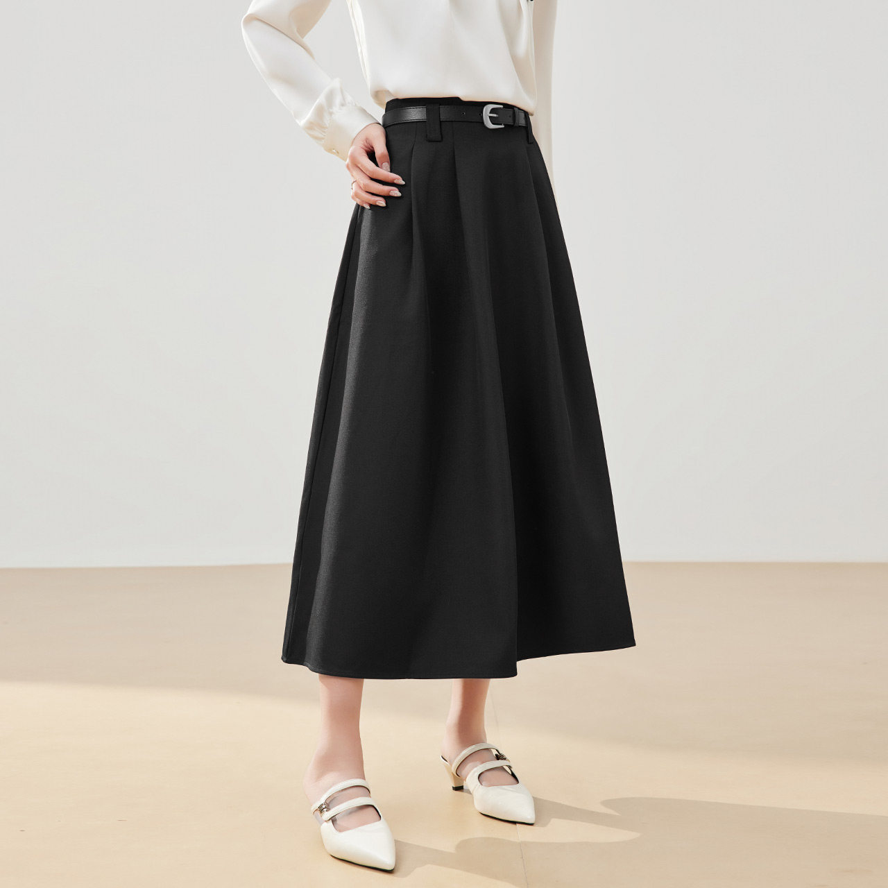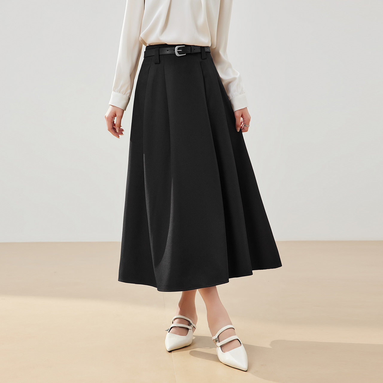 百搭半身裙显瘦西装 裙子 BRAND纯色通勤垂感高腰A字百褶裙经典 RPB