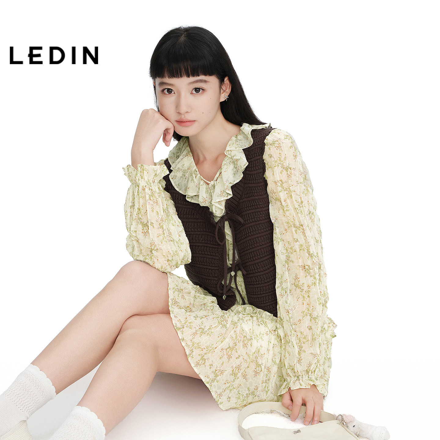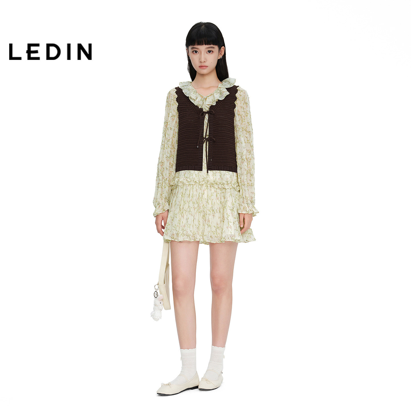 乐町清新碎花连衣裙女新款 下摆荷叶边裙子C1FAG1421 商场同款