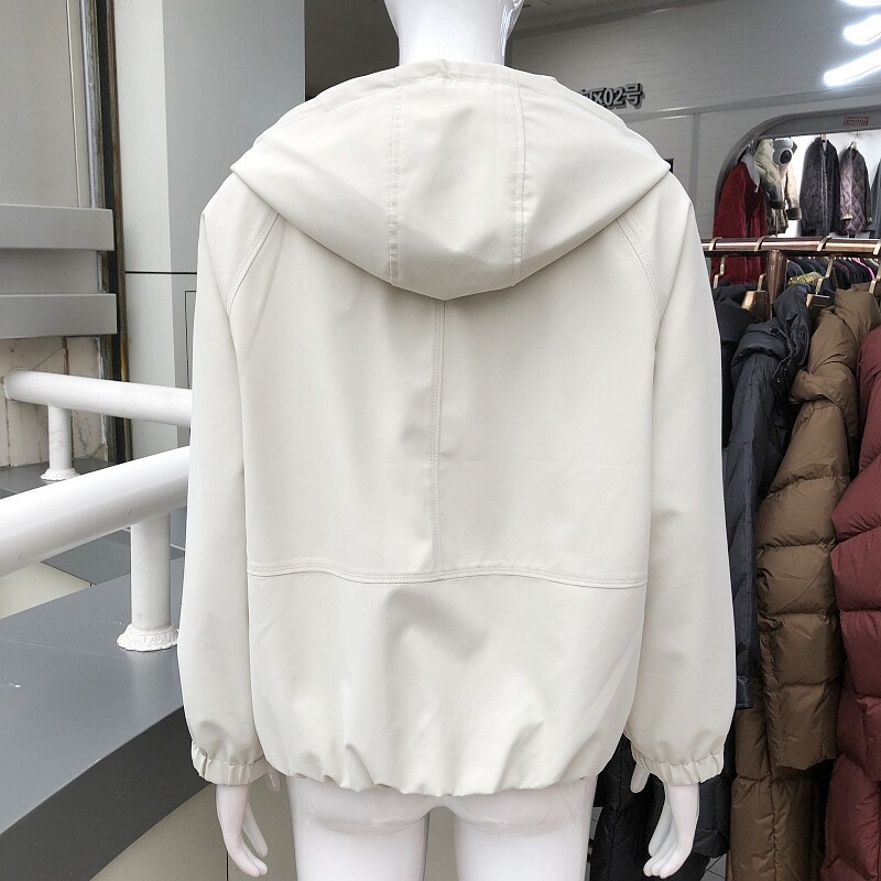 洋气连帽宽松休闲冲锋衣大码 两层防水防风夹克 外套女时尚 春秋短款