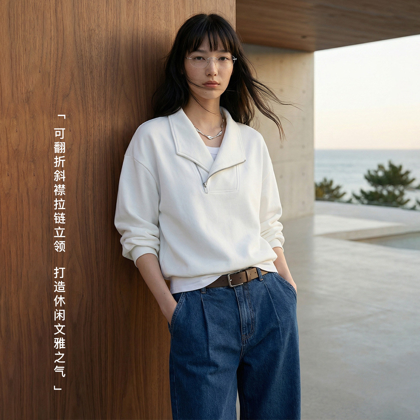COMMON 立领交叠领斜半拉链卫衣设计感通勤 VALUE「衔雅序」早春季由