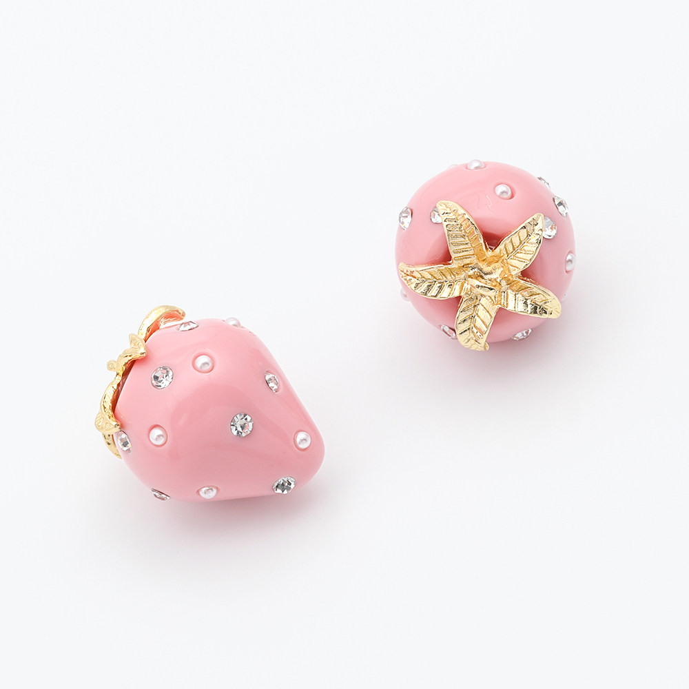 日本进口原创粉色草莓吊坠 耳饰项链手链DIY手工配件材料 镶钻由