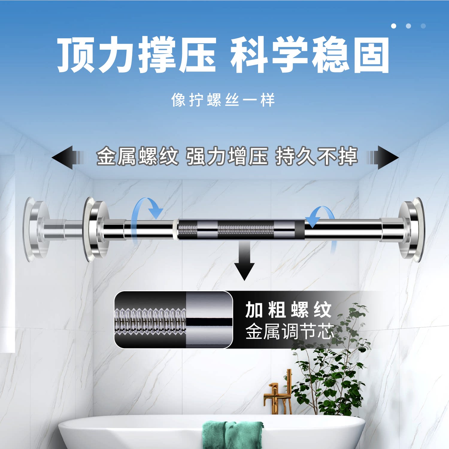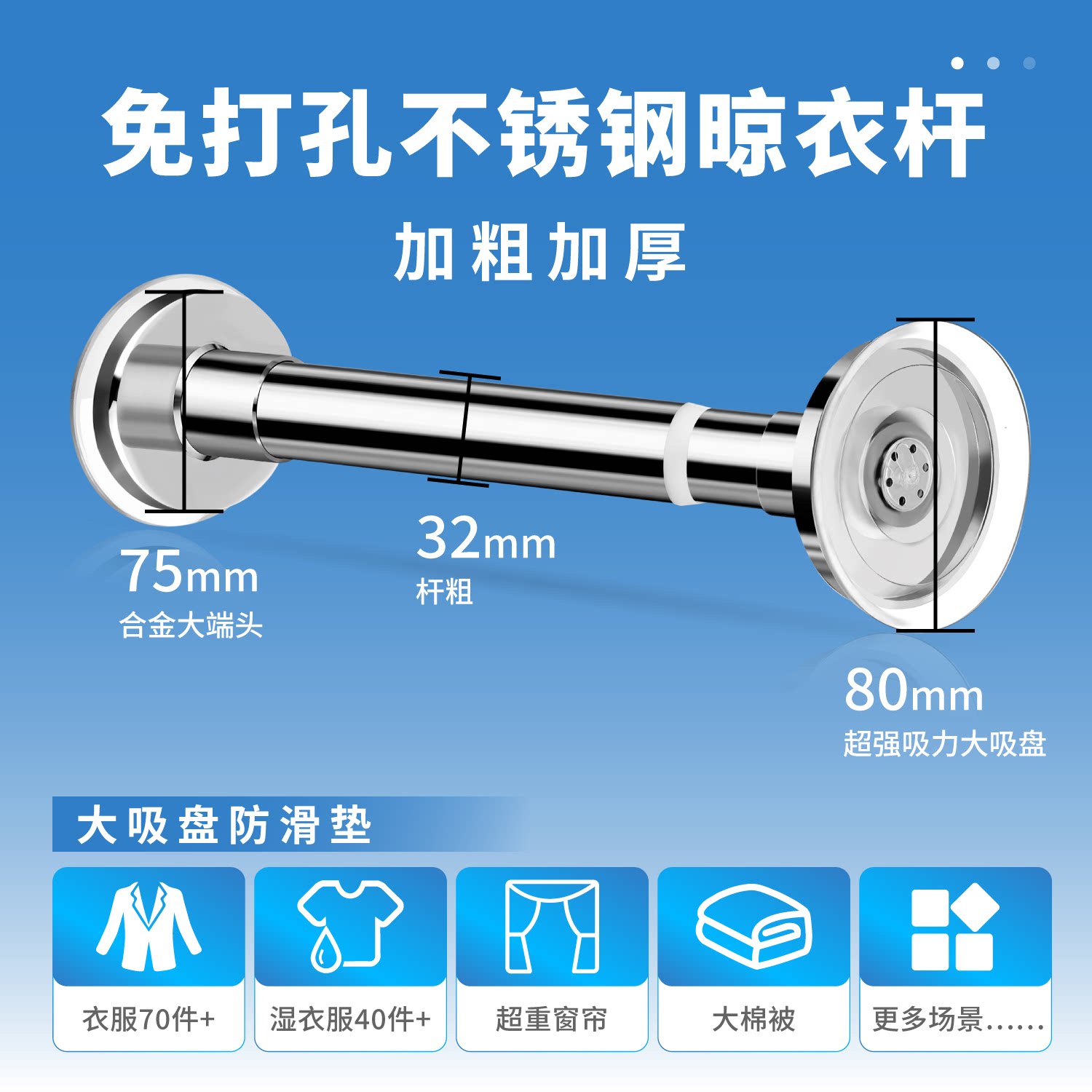 为您提供商品晾衣杆伸缩免打孔不锈钢阳台晾晒杆强力承重窗帘衣柜卫生间浴帘杆的详细介绍,