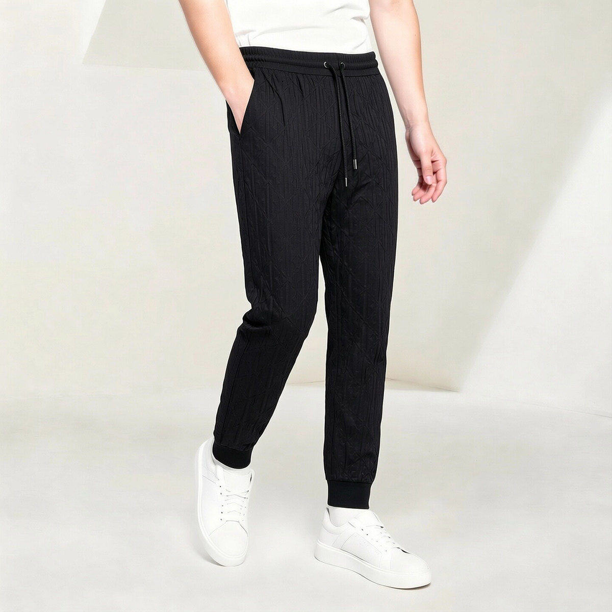黑色束脚裤 男士 春夏季 子 运动裤 九分裤 男松紧腰抽绳休闲裤 宾度男装由