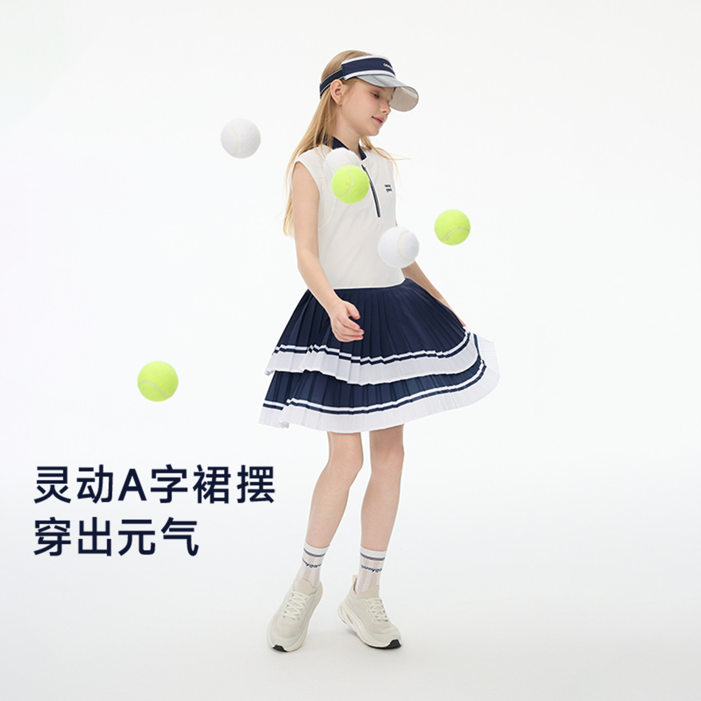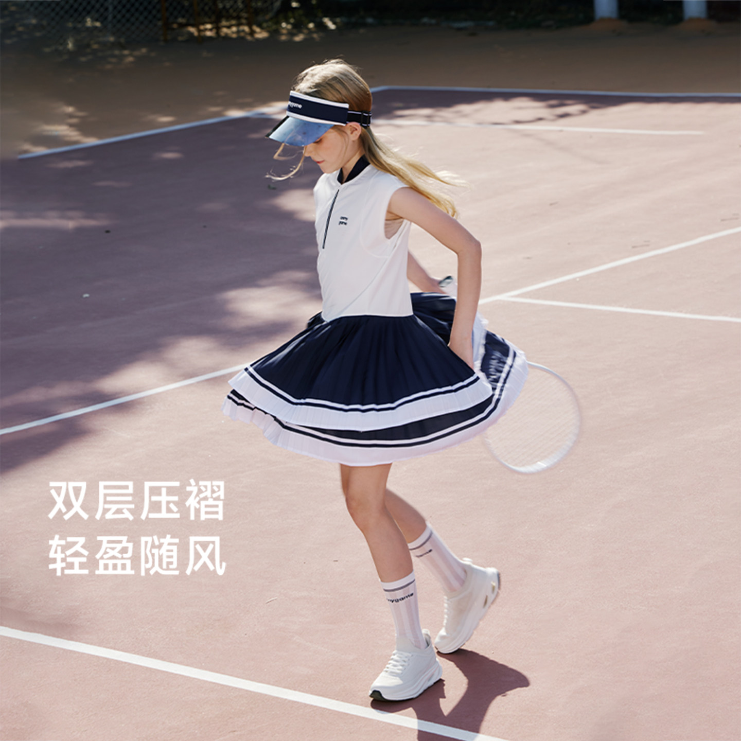 onmygame26夏新品 女童连衣裙凉感运动百褶裙儿童裙子 精英网球由