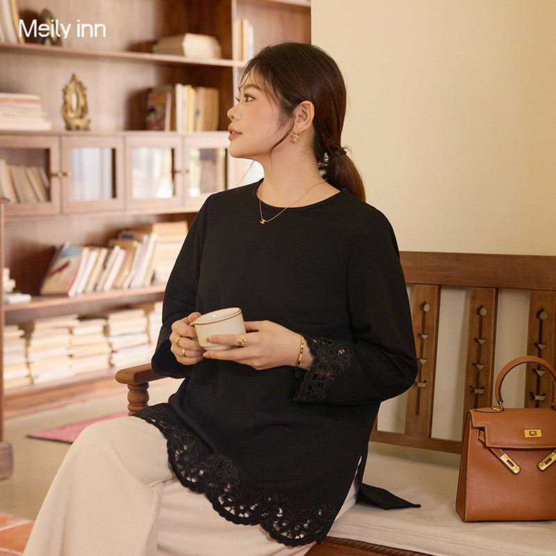美丽客栈高端大码 独特漂亮打底衫 胖mm遮肚子显瘦正肩长袖 上衣 女装