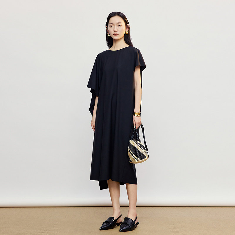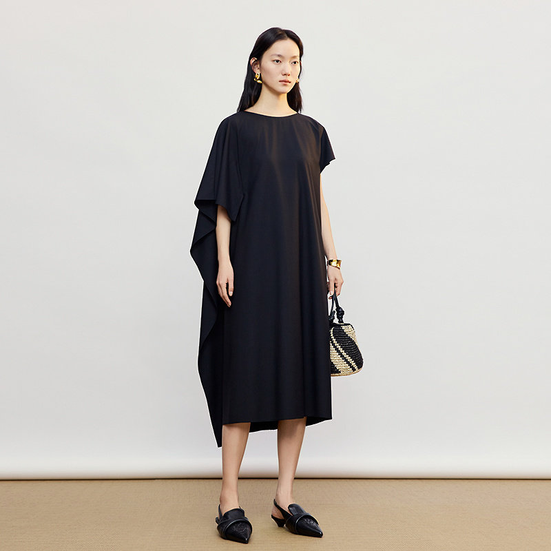 AUM噢姆2026年夏季 新款 丝毛弹力不对称黑色连衣裙女 商场同款