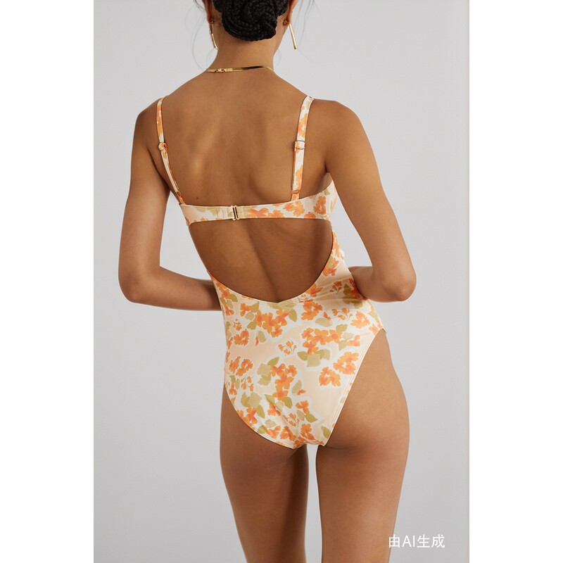 PEONY春夏女印花带钢圈弹力连体泳衣由