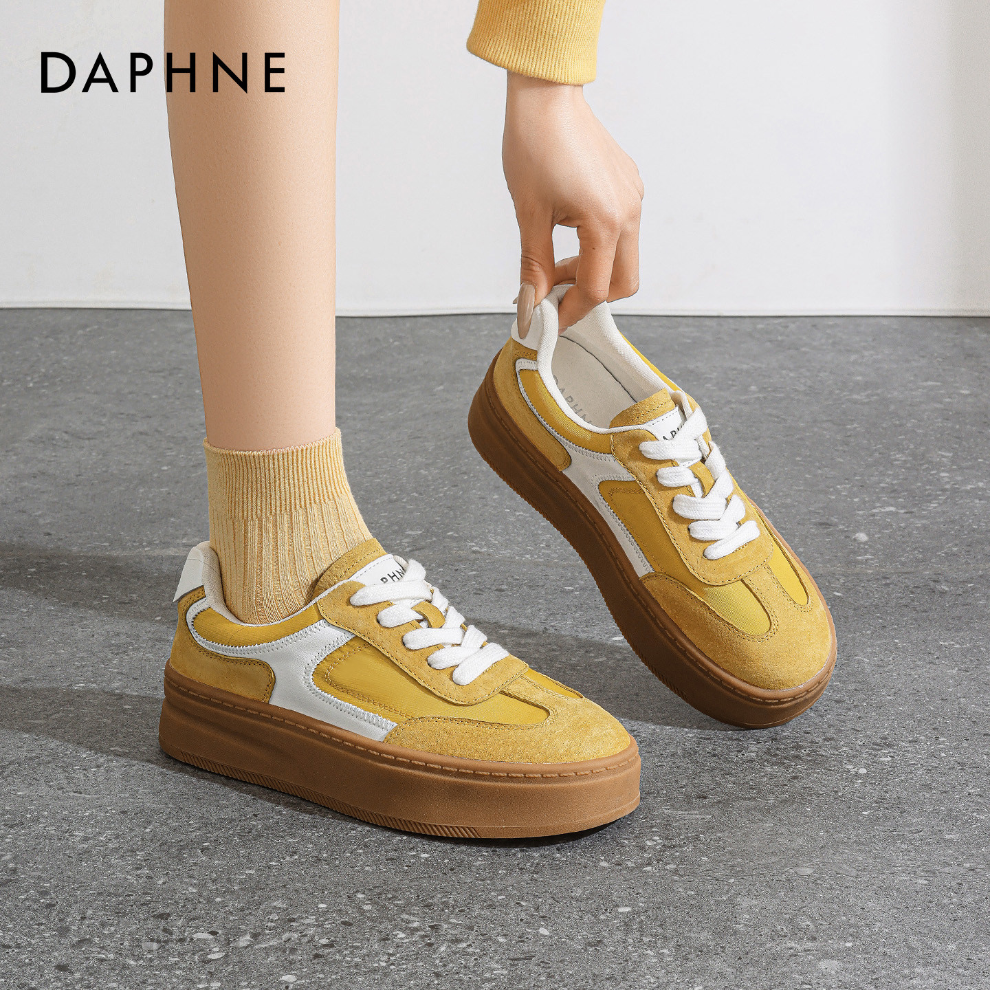 休闲运动板鞋 达芙妮黄色德训鞋 女2026新款 厚底增高透气薄款 子爆款