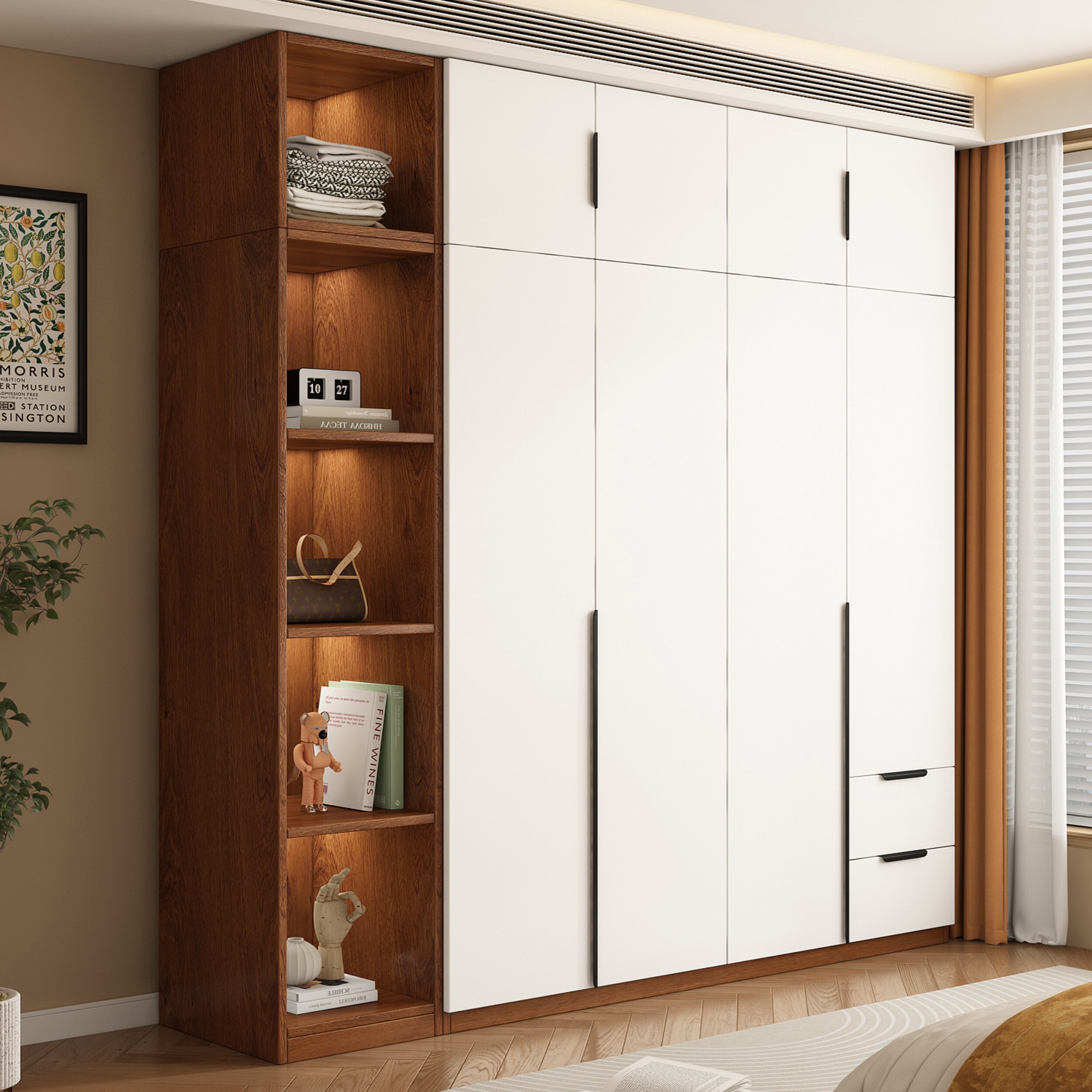 全榉木实木衣柜平开门组合二三四五门加高顶柜收纳独立原木衣橱