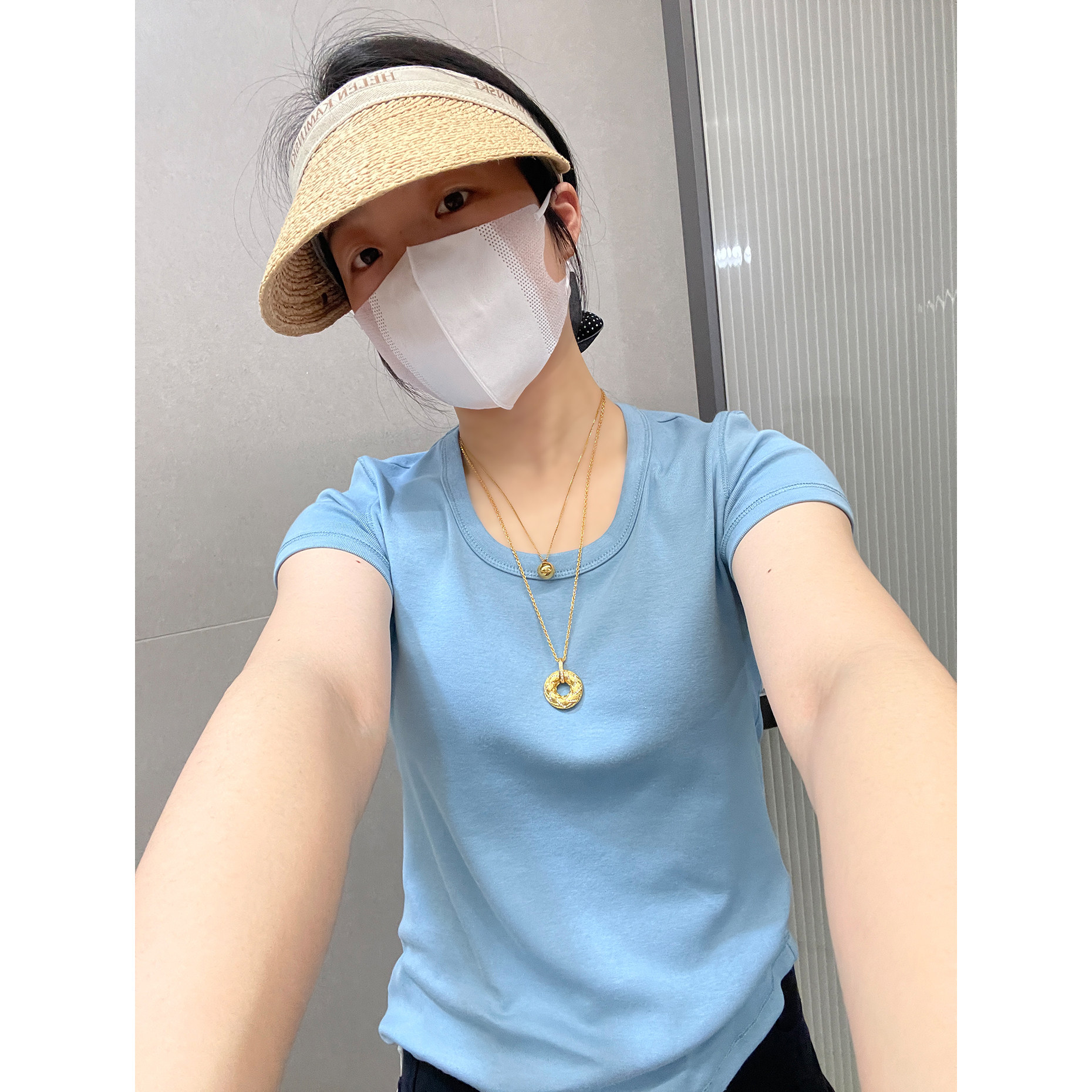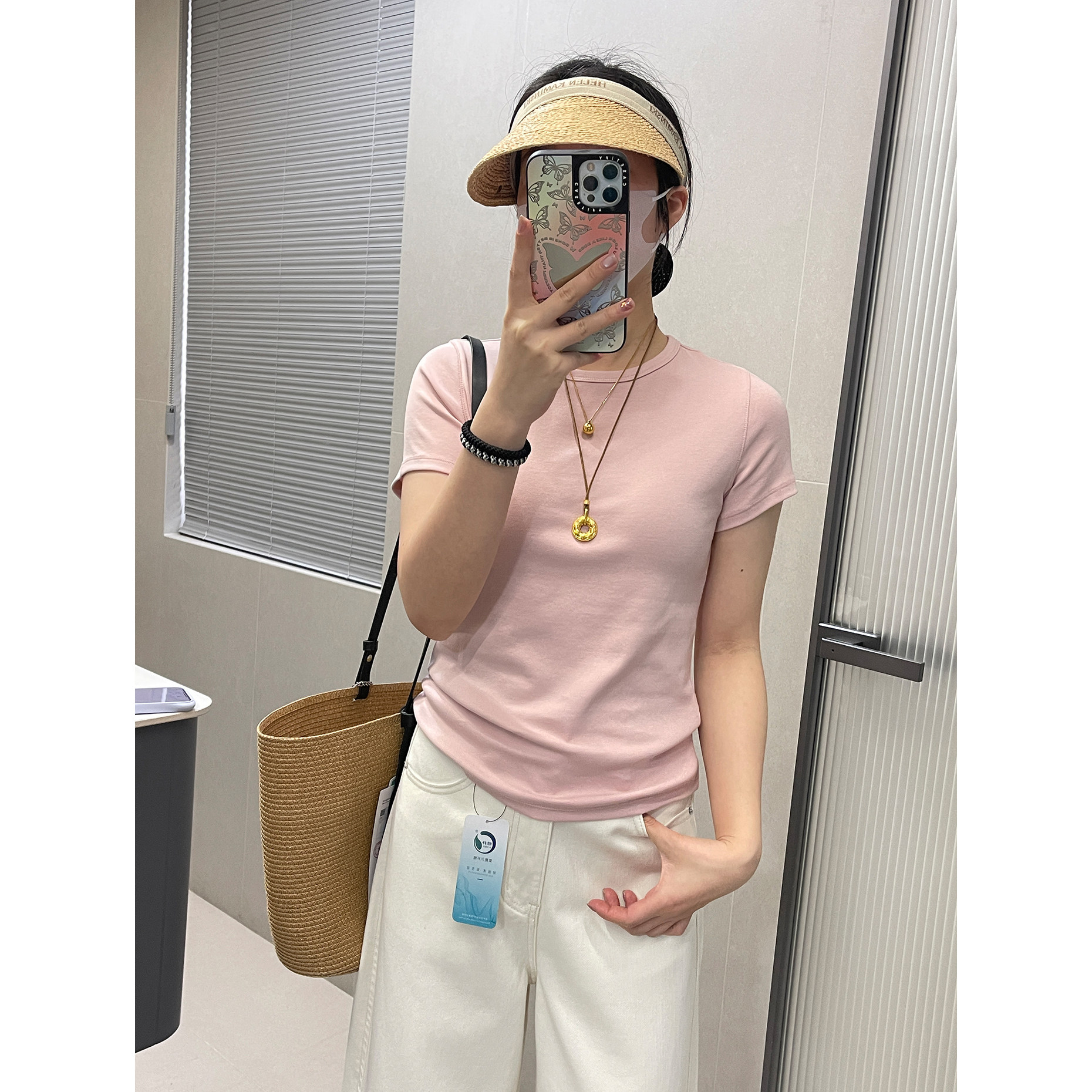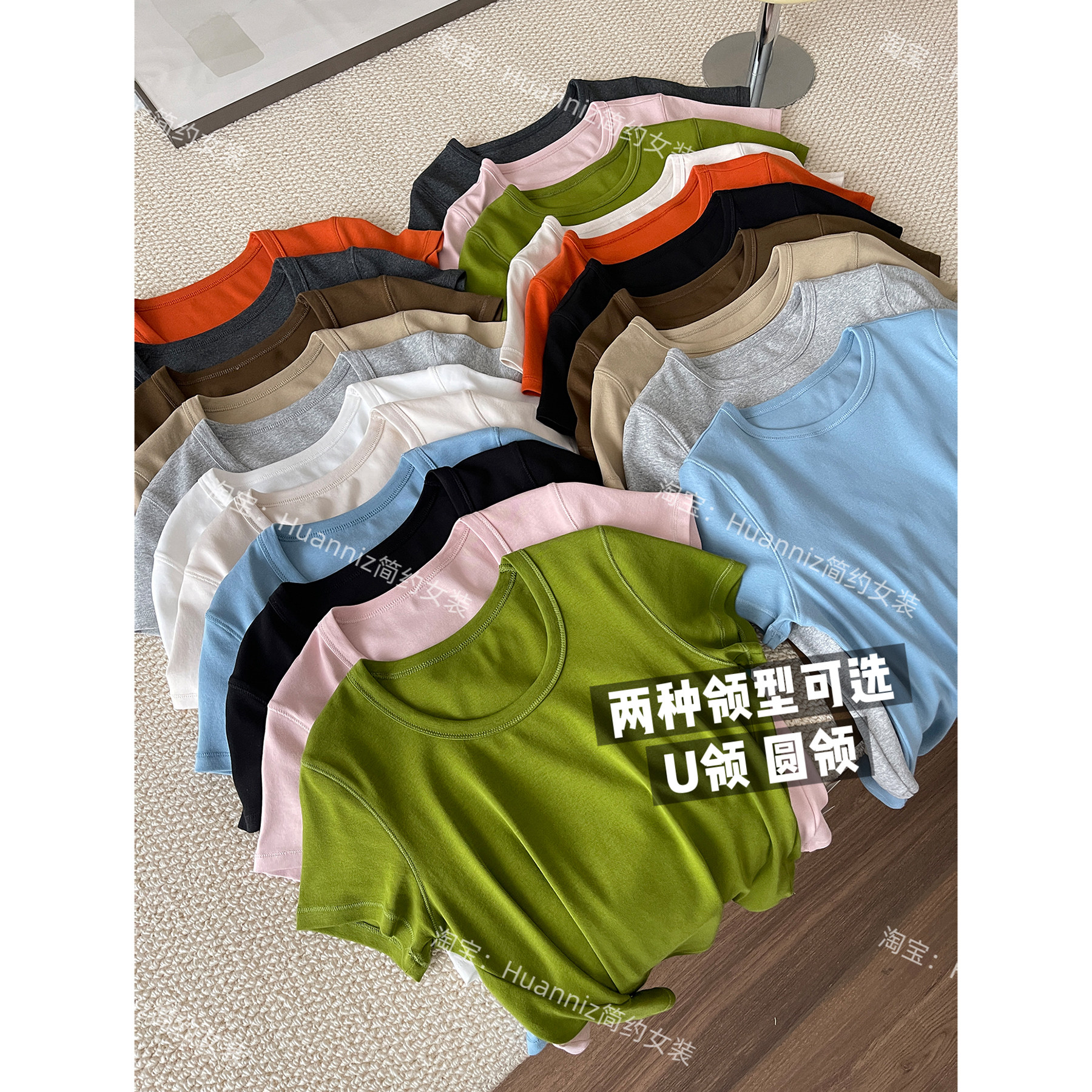 小蛮腰T恤小个子修身 上衣女 型ju显瘦11色显白圆领U领短袖 正肩小版由