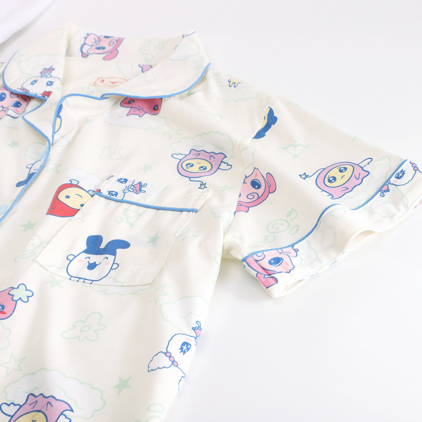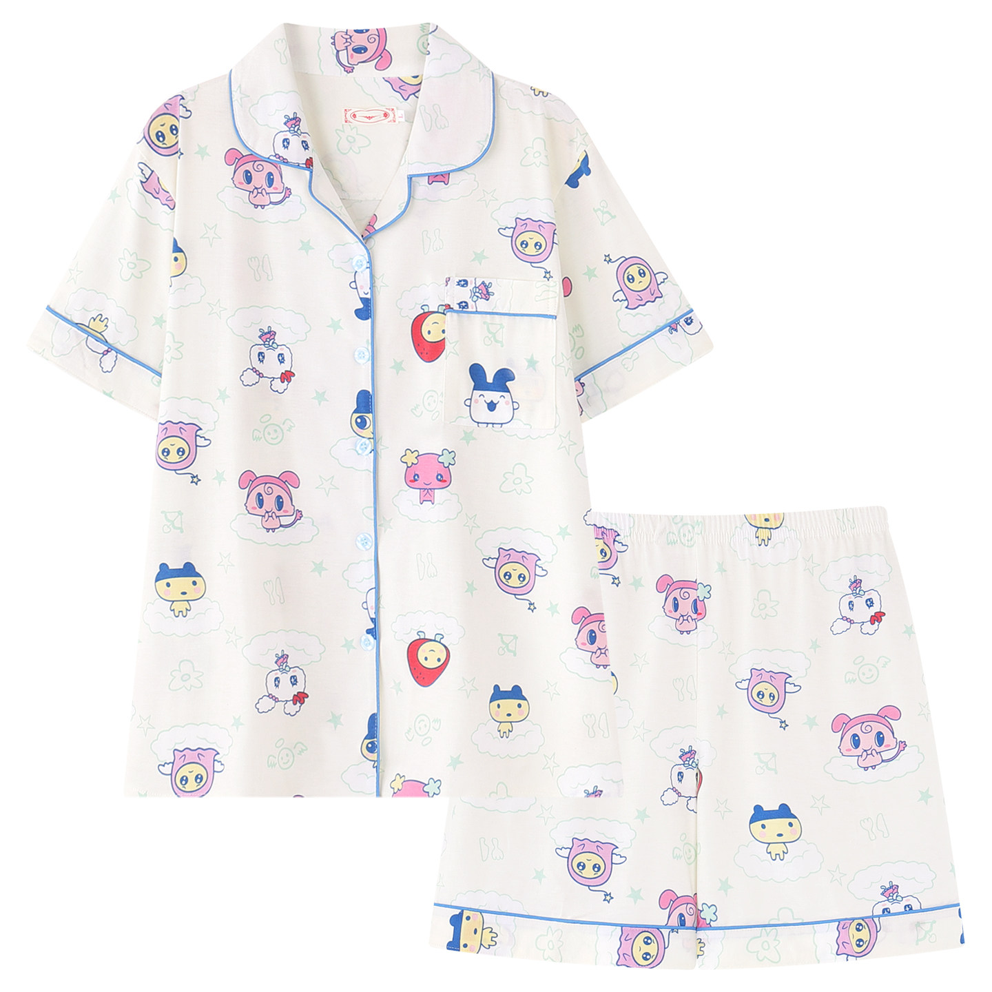 纯棉麻美吉家居服个性 简约可爱 短袖 tamagotchi拓麻歌子睡衣女夏季