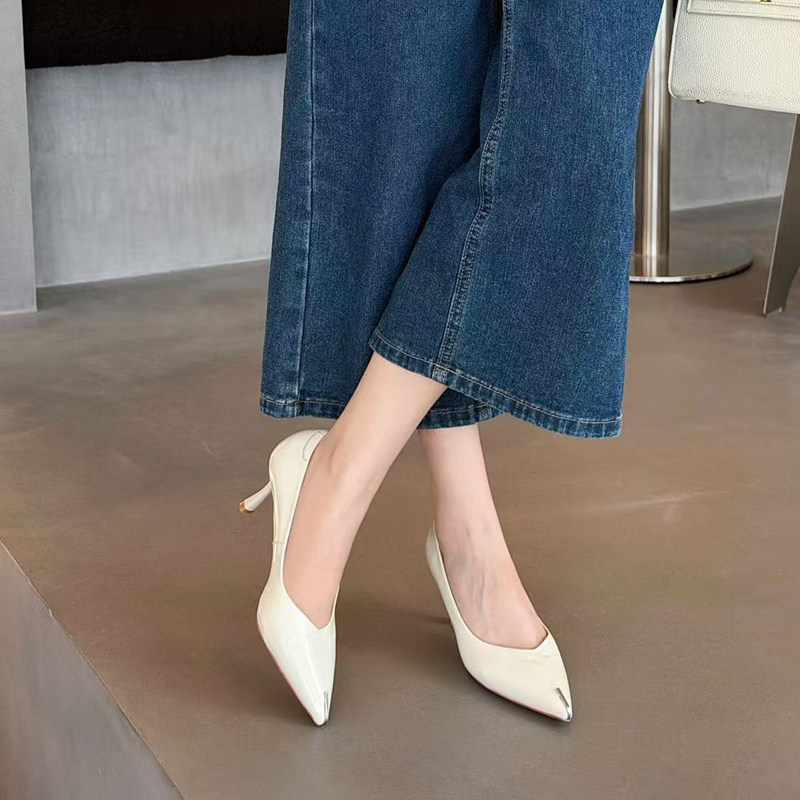 高跟鞋 夏季 白色软皮尖头细跟浅口通勤礼仪面试职业单鞋 女2026新款