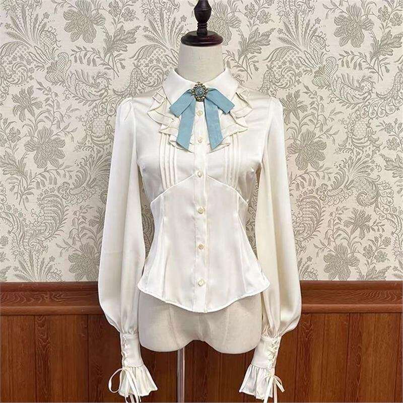 衬衫 长袖 洛丽塔玩偶之家垂感绑带收腰由